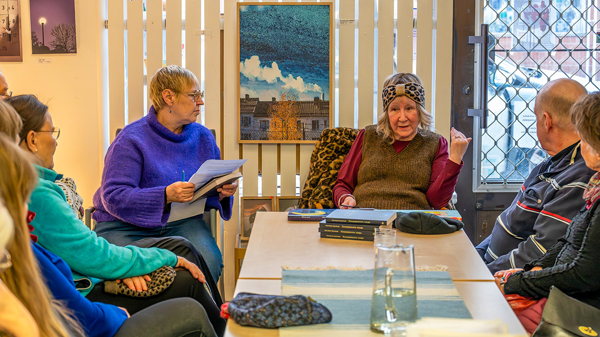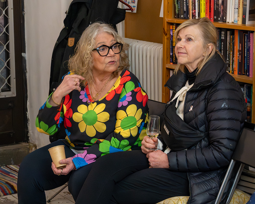 Tässä kirjakaupan vieraat lauantaina 21. tammikuuta jälkipuinnissa ravintolassa, oikealla kirjailija Pirjo Marjut Vega-Brandt ja hänen vieressään haastattelija Raija Piironen.